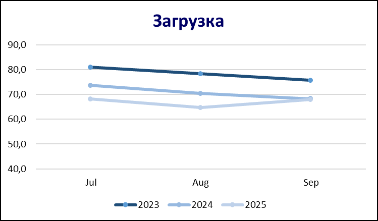 В 3 квартале месяцем с самой низкой загрузкой стал август – 64,7%